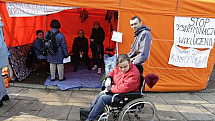 Opiekunowie dorosłych osób niepełnosprawnych Święta Zmartwychwstania Pańskiego spędzili przed Sejmem