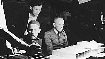 Żołnierz AK ujęty podczas obławy augustowskiej wskazuje kierunek, w którym wywożono jej ofiary