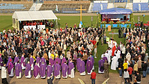 Kilka tysięcy osób uczestniczyło dzisiaj we Mszy św. sprawowanej w Wałbrzychu na stadionie sportowym w rocznicę odejścia do Domu Pana bł. Jana Pawła II