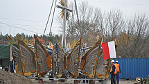 Montaż korony na kopule świątyni w Toruniu