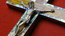 Pątnicy podkreślają swoją przynależność do Chrystusa, adorując krzyż