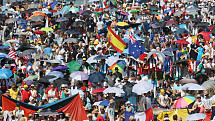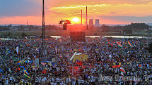 Młodzież uczestnicząca w ŚDM spotkała się w Brzegach, aby na Campus Misericordiae wspólnie czuwać przed Mszą św. Posłania. Zobacz zdjęcia