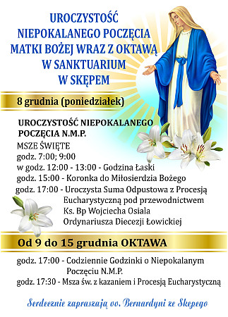 wraz z oktawą w sanktuarium w Skępem.Msze św. 8 grudnia zostaną odprawione o godz. 7.00